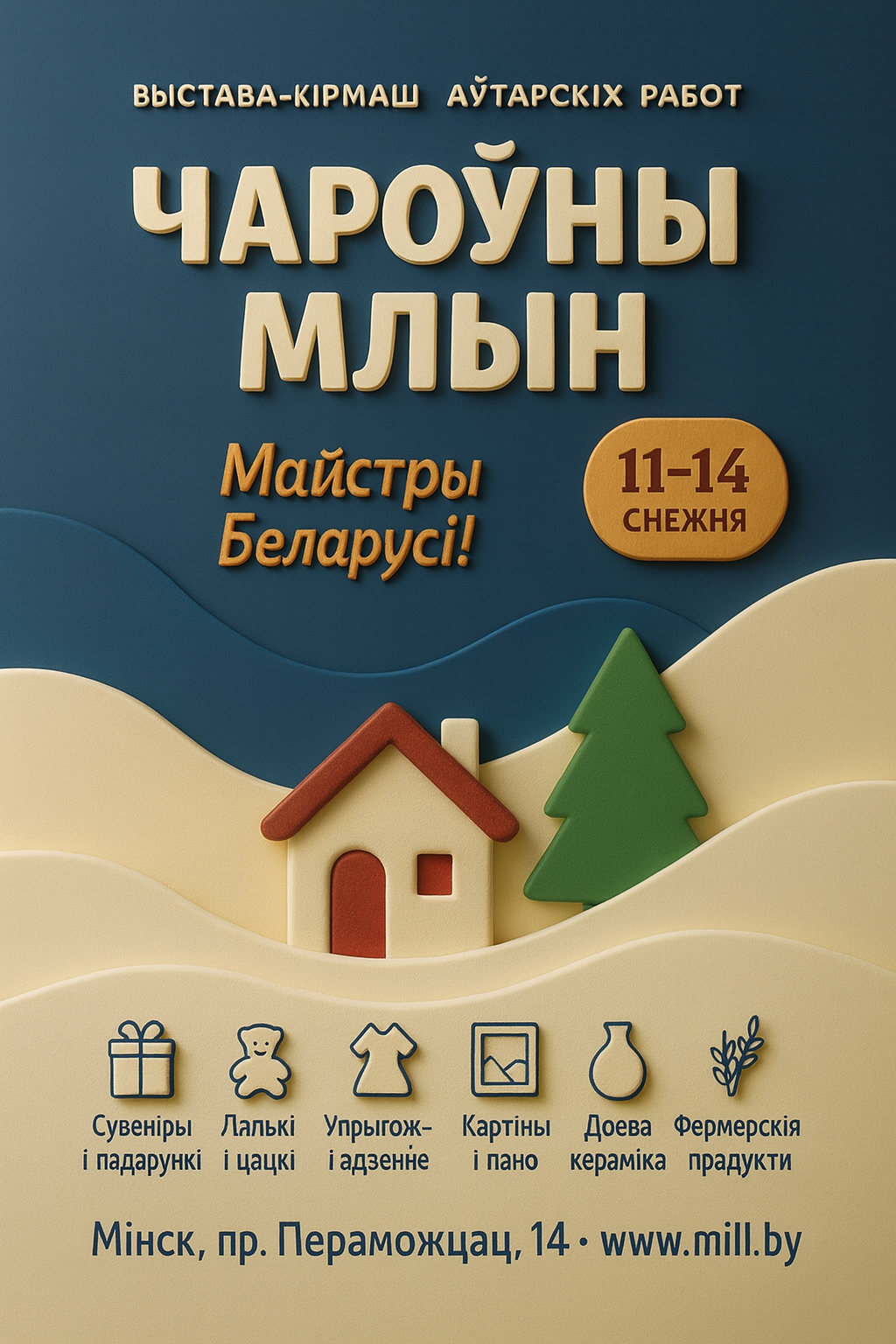 Разработка дизайн-макета афиши для новогодней выставки изделий ручной работы