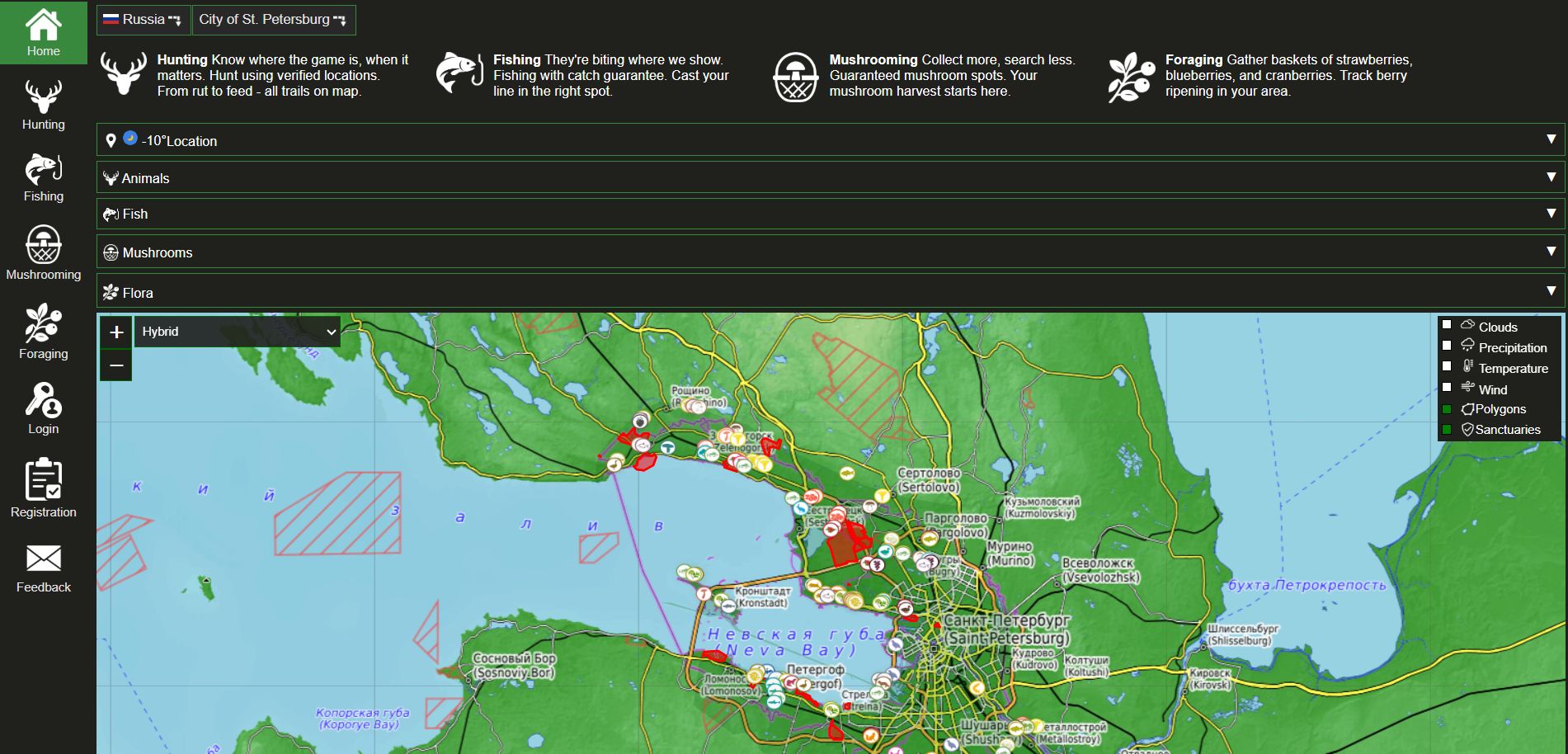 WildTracks is an interactive map with locations of animal habitats, fishing spots, mushroom and berry grounds. We combine data from multiple sources, including user observations, so you can find the best places for the right season and weather conditions.
