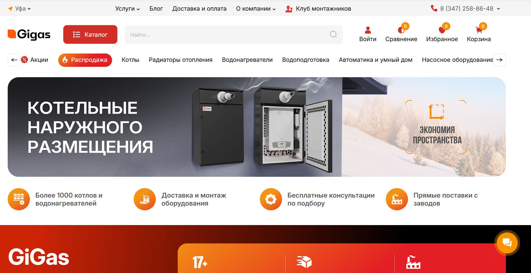 Оборудование для систем отопления, газо- и водоснабжения в Уфе. Большой ассортимент и высокое качество обслуживания в компании GiGas.