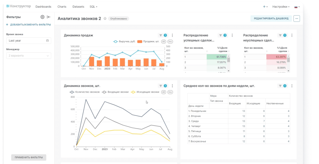 Анализ процесса работы с лидами мы предложили реализовать в виде нескольких дашбордов.