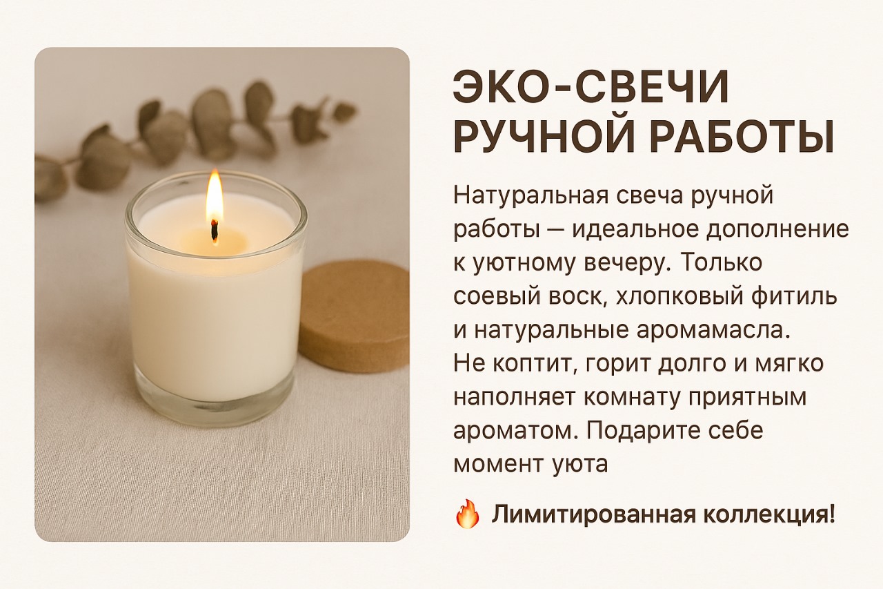 "Я пишу тексты, которые помогают вашему бизнесу расти. Мои услуги включают создание продающих текстов, SEO-контента и бизнес-коммуникаций для сайтов, рекламных материалов и социальных сетей. С помощью грамотных и цепляющих текстов я помогу вам увеличить конверсии, повысить интерес к продукту и укрепить отношения с клиентами. " Услуги: