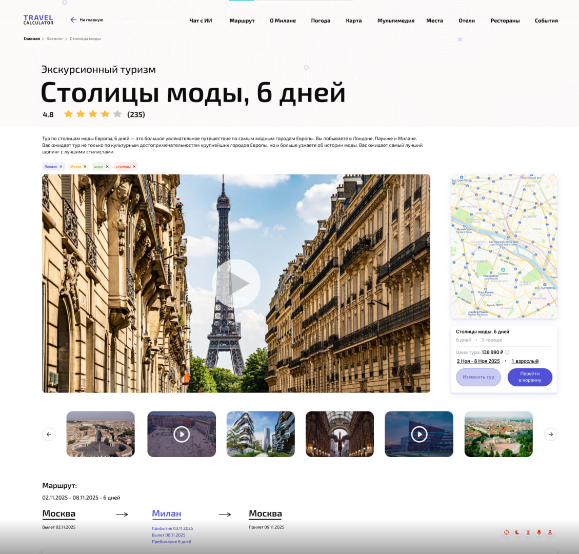 Работая над заказом для крупной компании, занимающейся путешествиями, я создал дизайн карточки путешествия в Figma. Проект был масштабным и включал в себя разработку как мобильной версии, так и версии для ПК. Несмотря на объем работы, мне удалось справиться с ним всего за три дня.