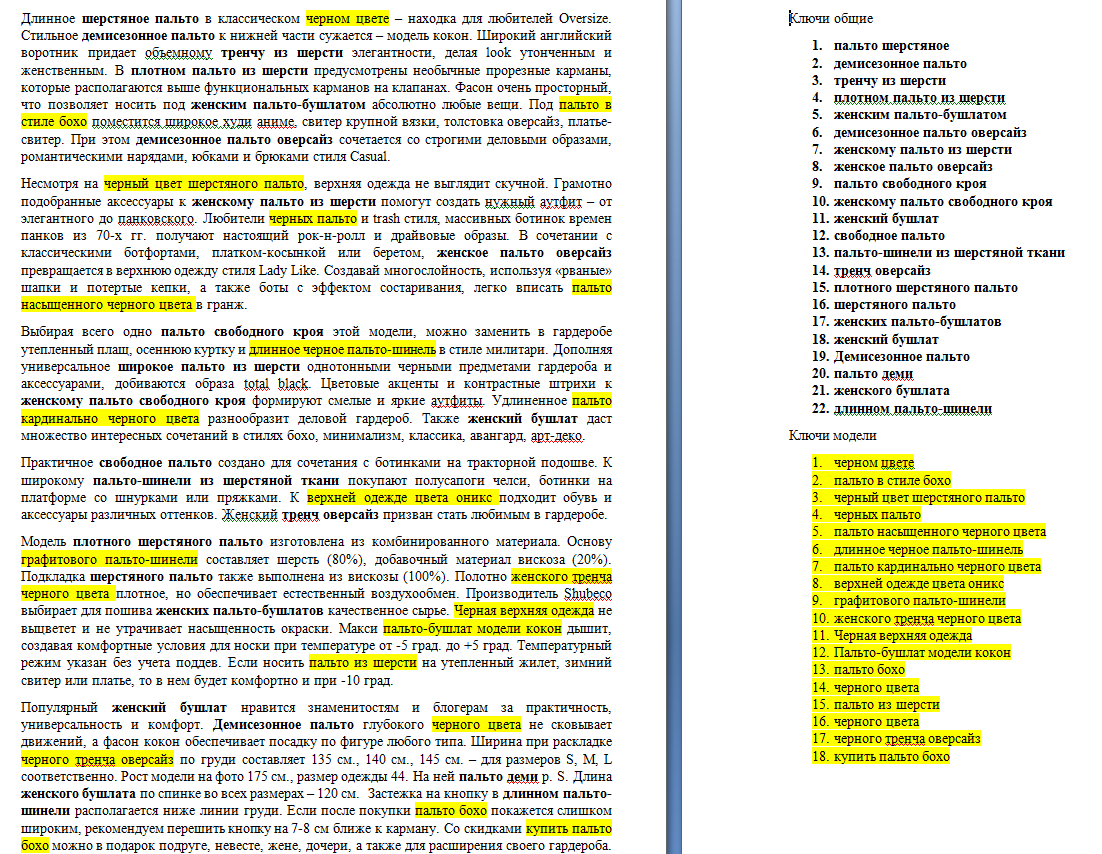 ✅ Важно было при хорошей читабельности и высокой информативности вписать в текст много ключей категории и модели.