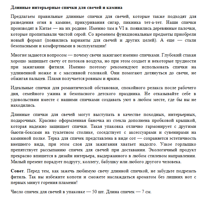 Нужно было написать максимально познавательный и интересный для читателя, но при этом оптимизированный текст, ненавязчиво вызвав желание купить именно этот товар.