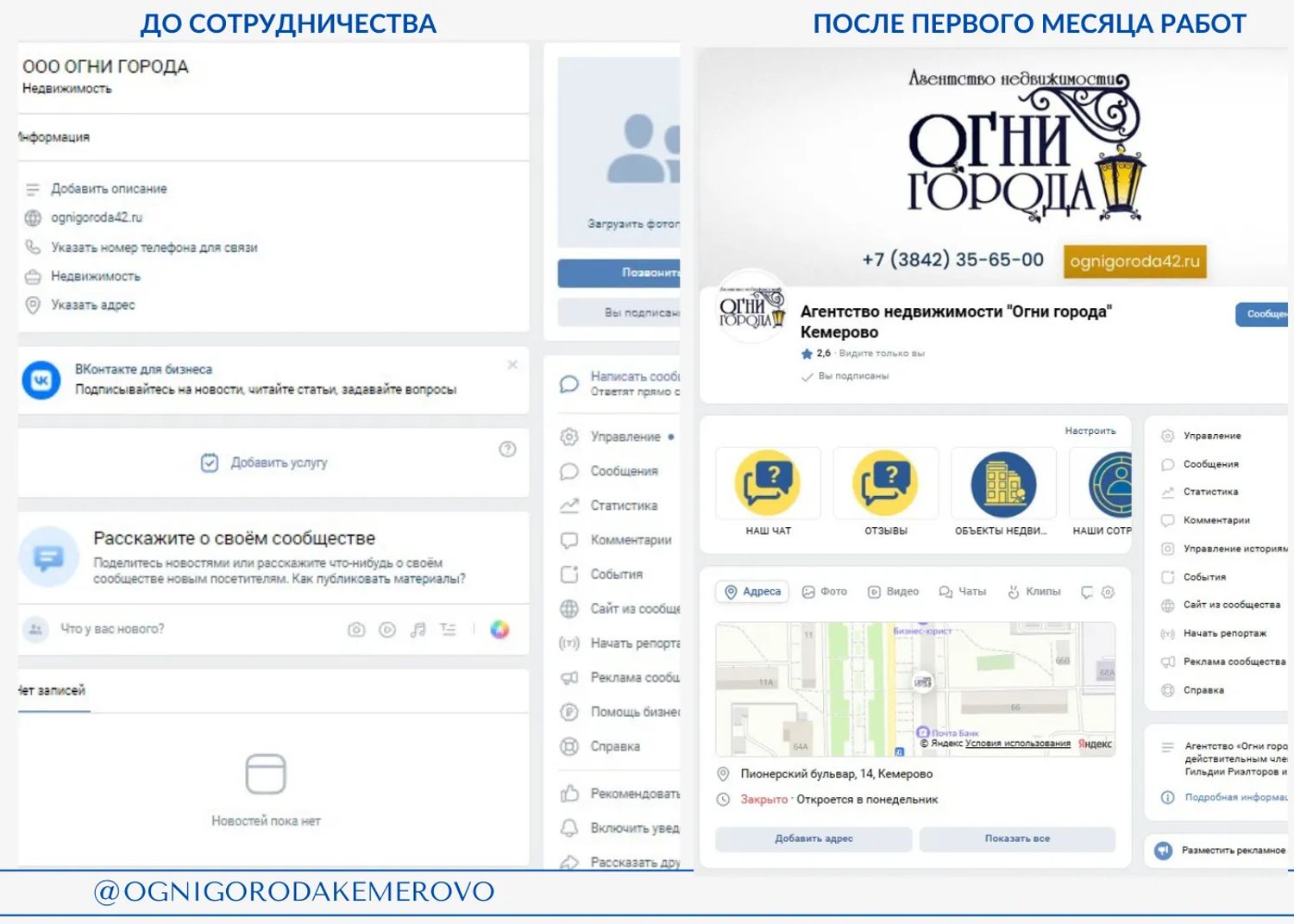 Мы помогли агентству «Огни города» перенести всю важную информацию, включая описания услуг, контактные данные и активные предложения, из утерянной группы в новое сообщество. Это позволило компании не потерять актуальный контент и плавно перенести существующую аудиторию.