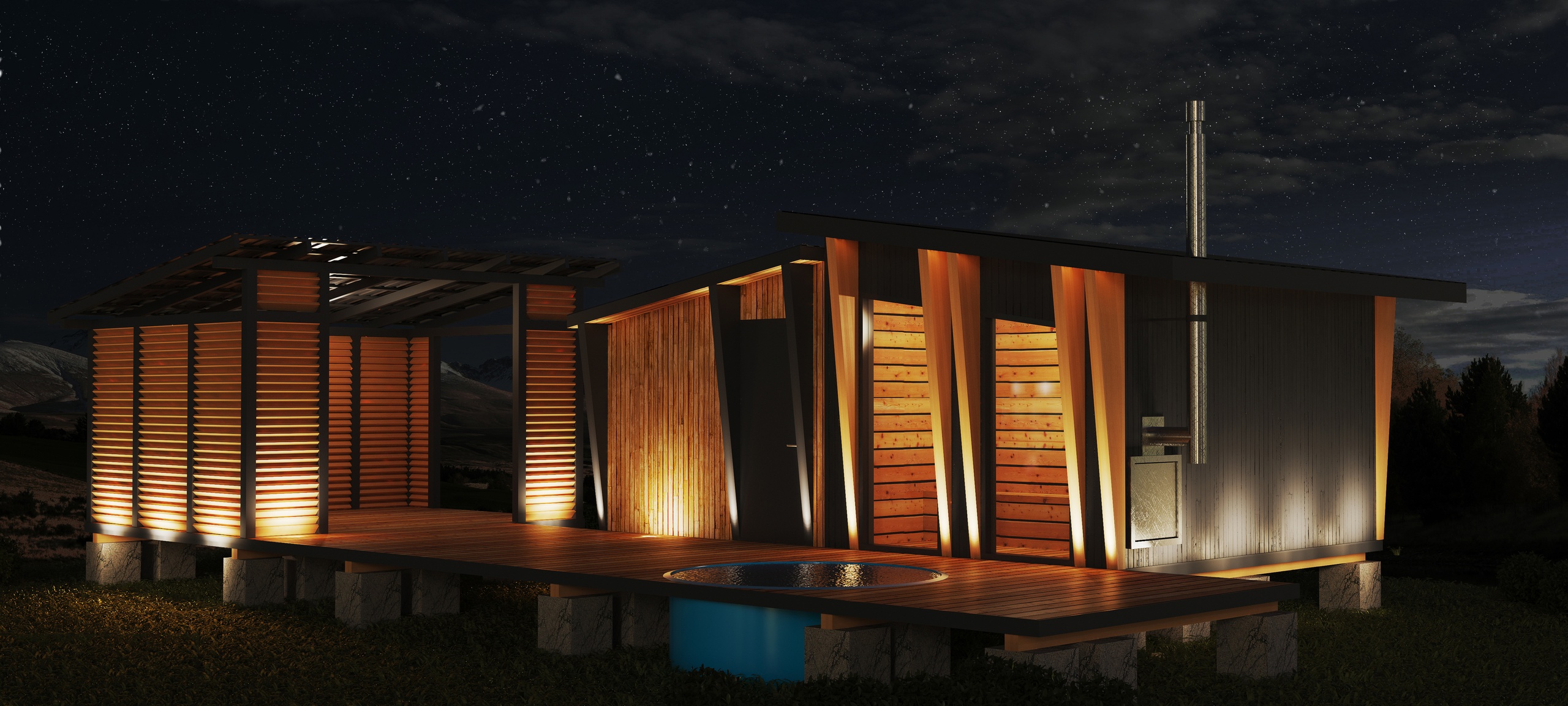 Разработка концепции благоустроенной территории бани с беседкой, выбран второй вариант, выполнено в 3ds max c плагином vray next