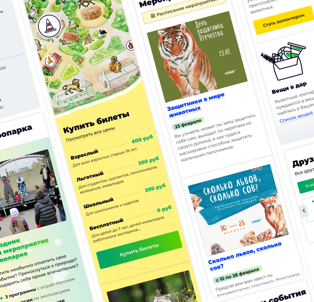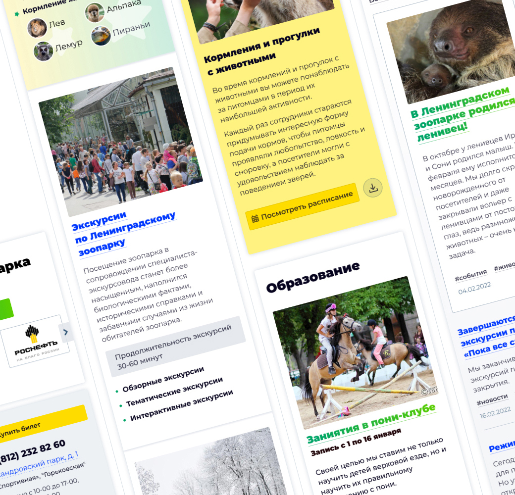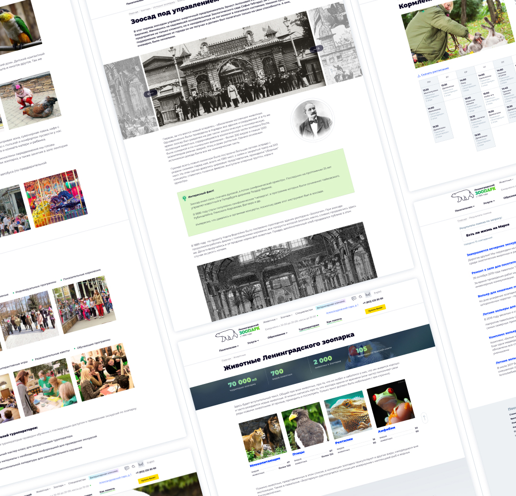 У Ленинградского зоопарка много интересных обучающих программ, тематических дней, конный клуб, проведение мероприятий... Я все это оформила доступно и понятно, чтобы повысить интерес посетителей и привлечь больше людей к таким услугам.