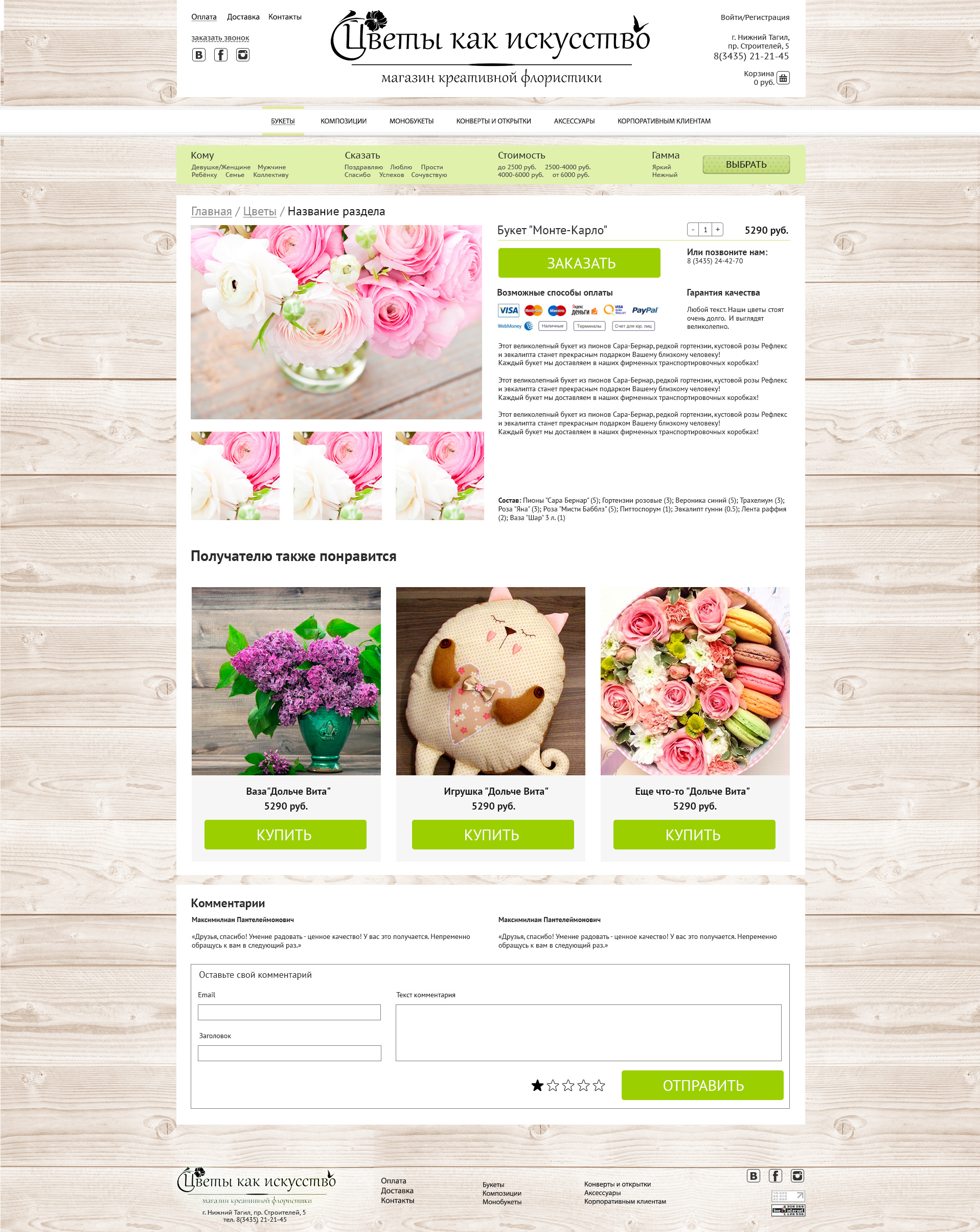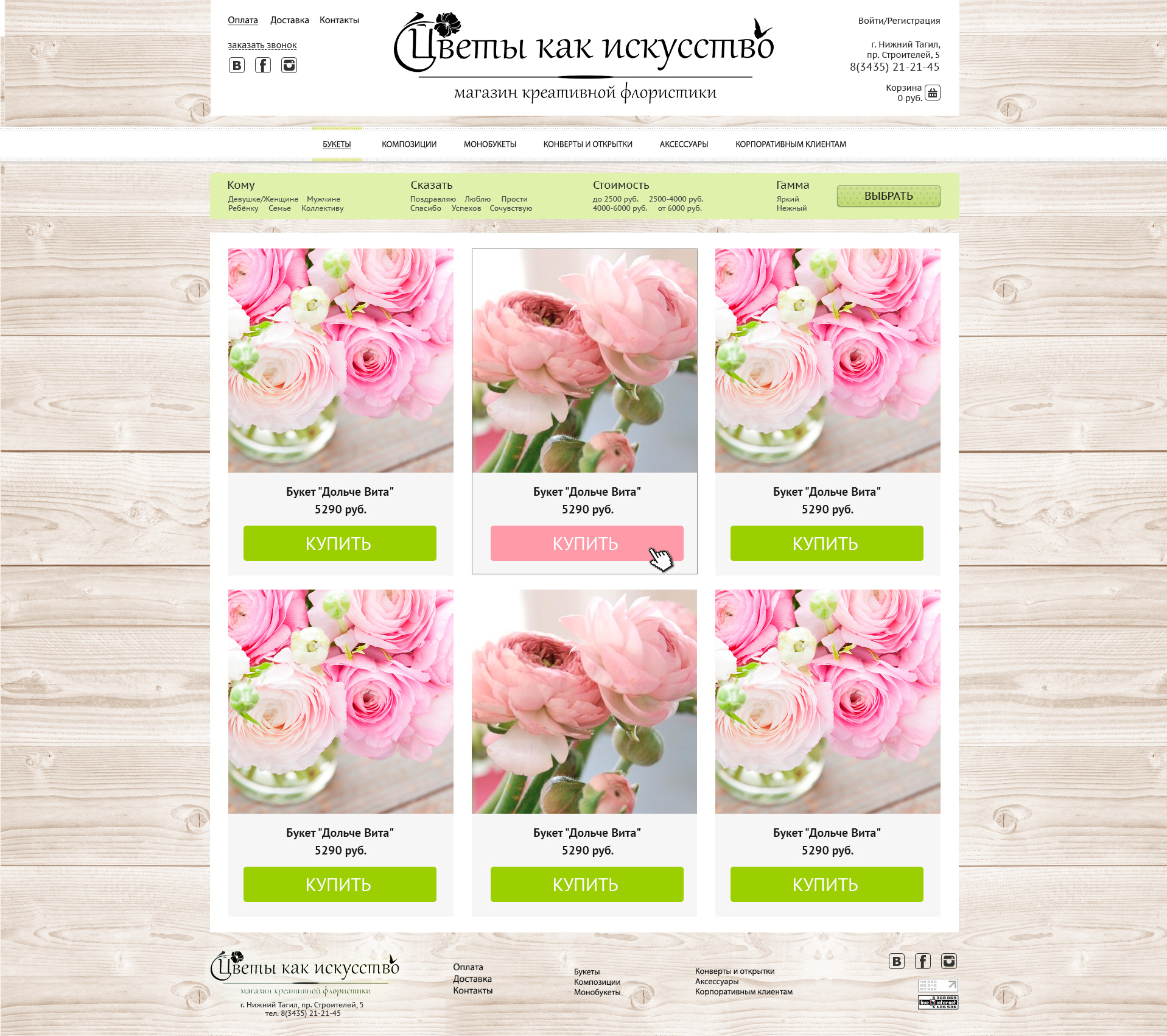 Создать привлекательный и функциональный дизайн сайта для компании, специализирующейся на доставке и продаже цветов.
