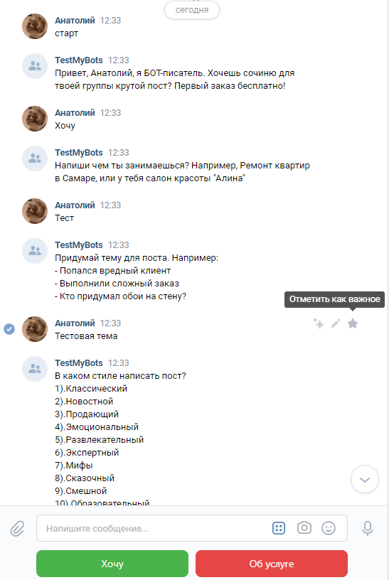 Бот собирающий от пользователя информацию по заказу, и направляющий заказ исполнителю