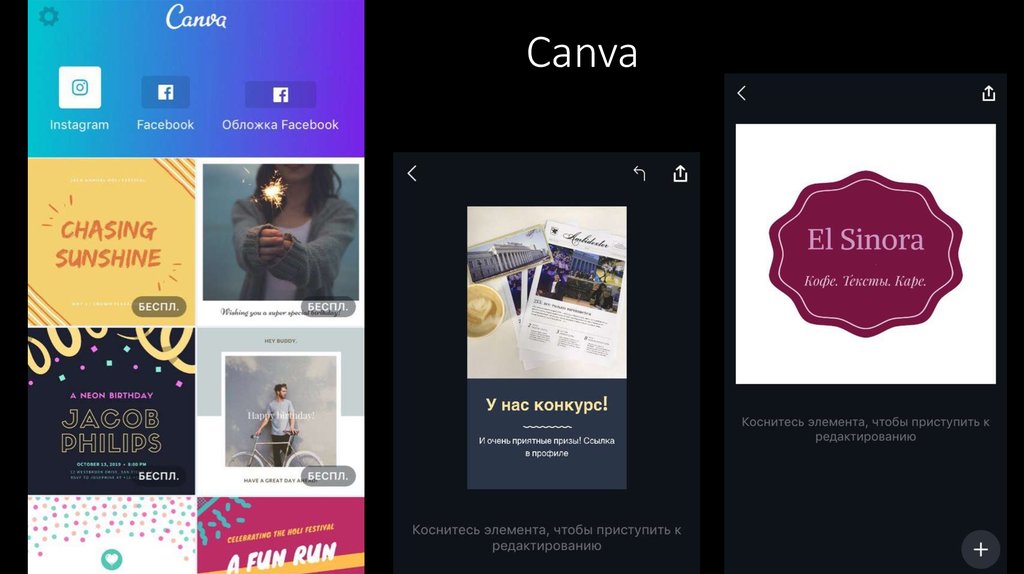 Приложение Canva- это австралийский онлайн-сервис не только для дизайнеров, но и для тех, кто только делает первые шаги в дизайне. Данное приложение очень популярно в России. Но в связи с нынешней политической ситуацией использовать можно только с VPN.